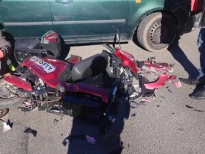 Na frekventovanej ceste došlo k dopravnej nehode osobného vozidla s motocyklom, zasahujú záchranné zložky