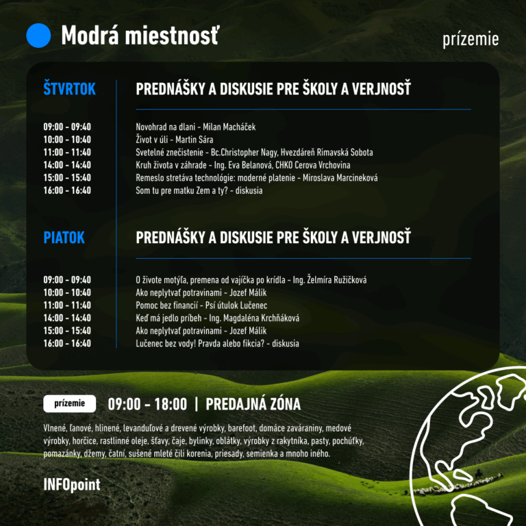 V dňoch 23. a 24. apríla 2026 sa na Námestí republiky v Lučenci uskutoční podujatie, ktoré spája vzdelávanie s kreativitou a podporou lokálnej ekonomiky. Organizátori si pripravili pestrú mozaiku aktivít zameraných na prírodu, ekológiu a udržateľný životný štýl.