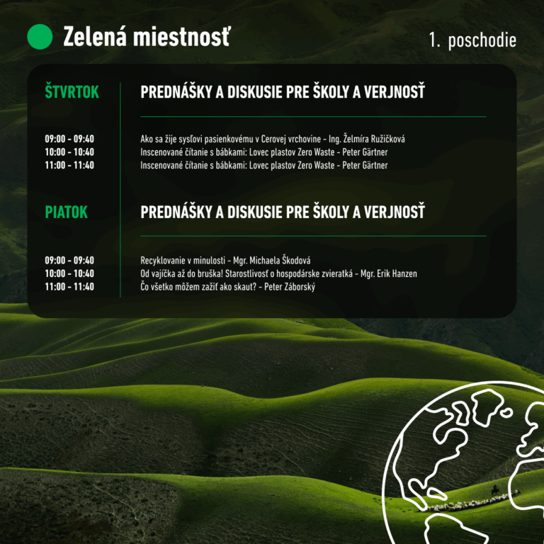 Festival je rozdelený do niekoľkých tematických sekcií, aby si na svoje prišiel naozaj každý. Odborníci a nadšenci prinesú fascinujúce zaujímavosti a praktické informácie o aktuálnych environmentálnych výzvach.